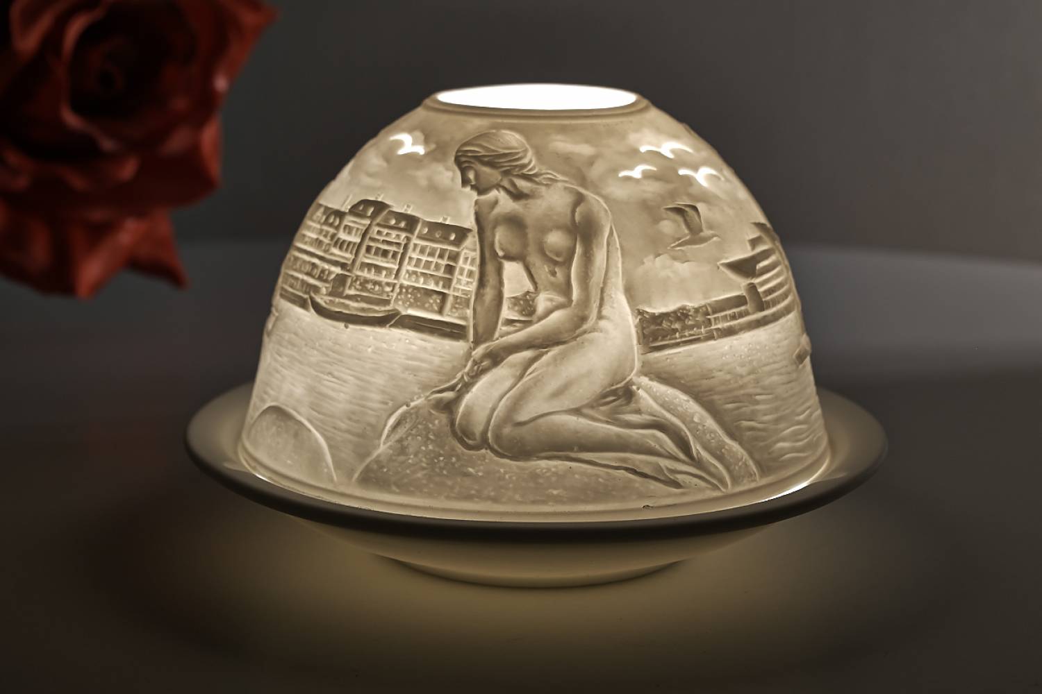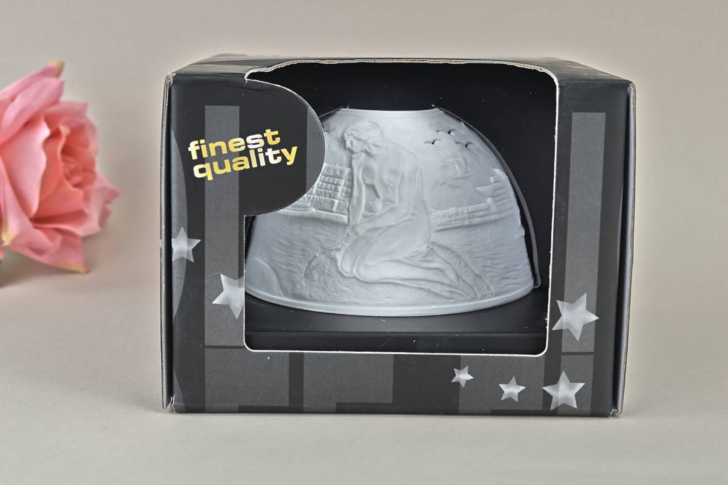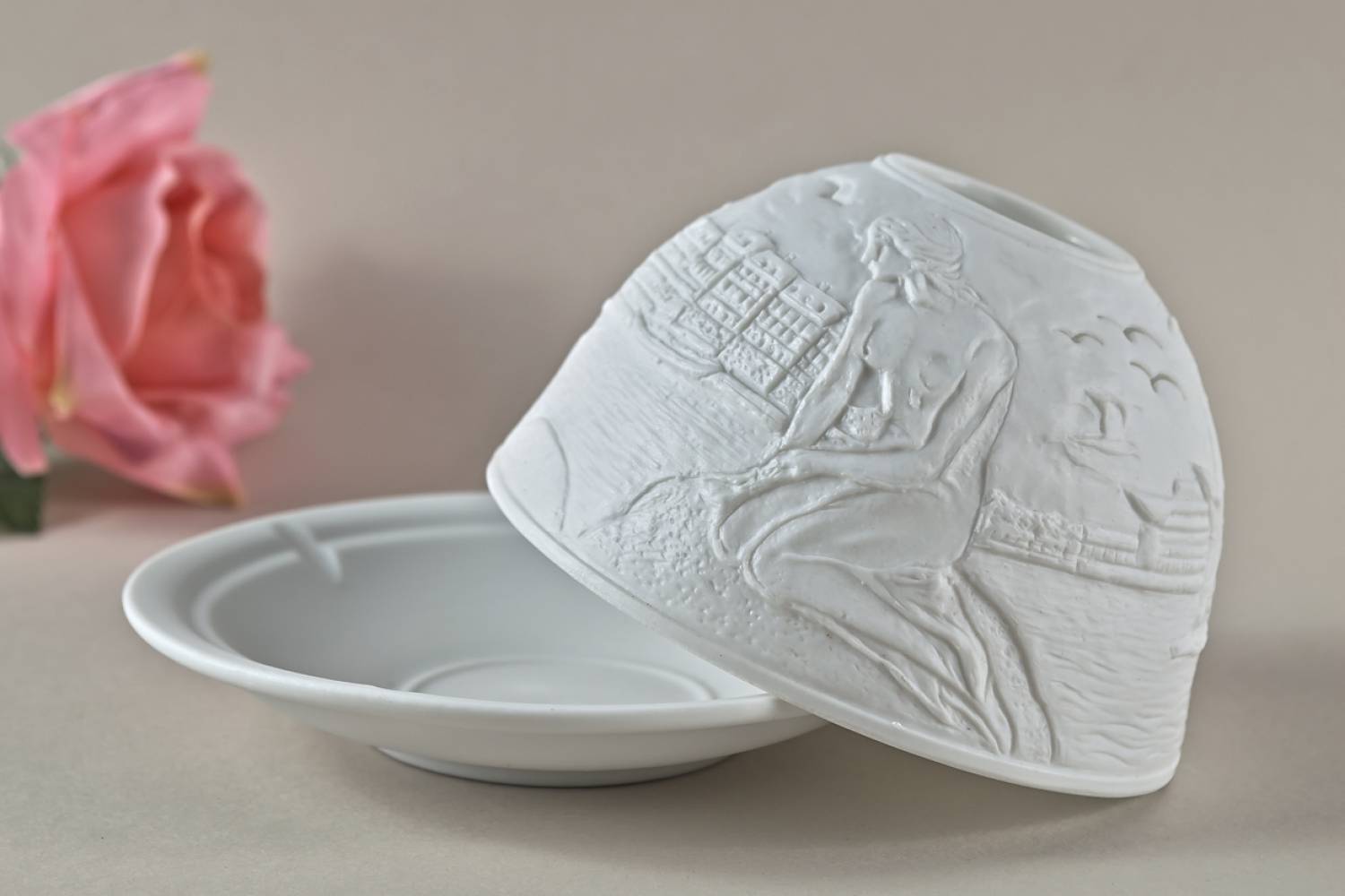 Kopenhagen - ein Teelichthalter aus Bisquitporzellan als Erinnerung an einen Urlaub in der Hauptstadt von Dänemark mit dem Abbild der kleinen Meerjungfrau.
