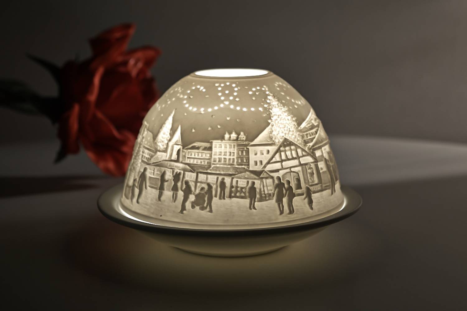 Kerzenfarm Dome Light Nr. 30168 Weihnachtsmarkt - Teelicht Windlicht Dekoration Porzellanteelicht