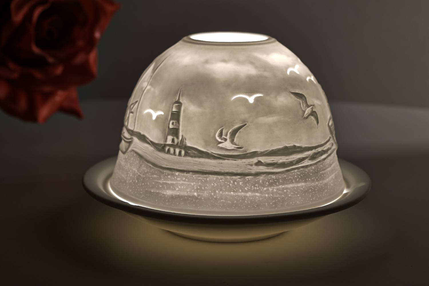 Lieferumfang: 1 Domelight inkl. Porzellankuppel + Teller aus Porzellan, ohne Teelicht und ohne Dekoration