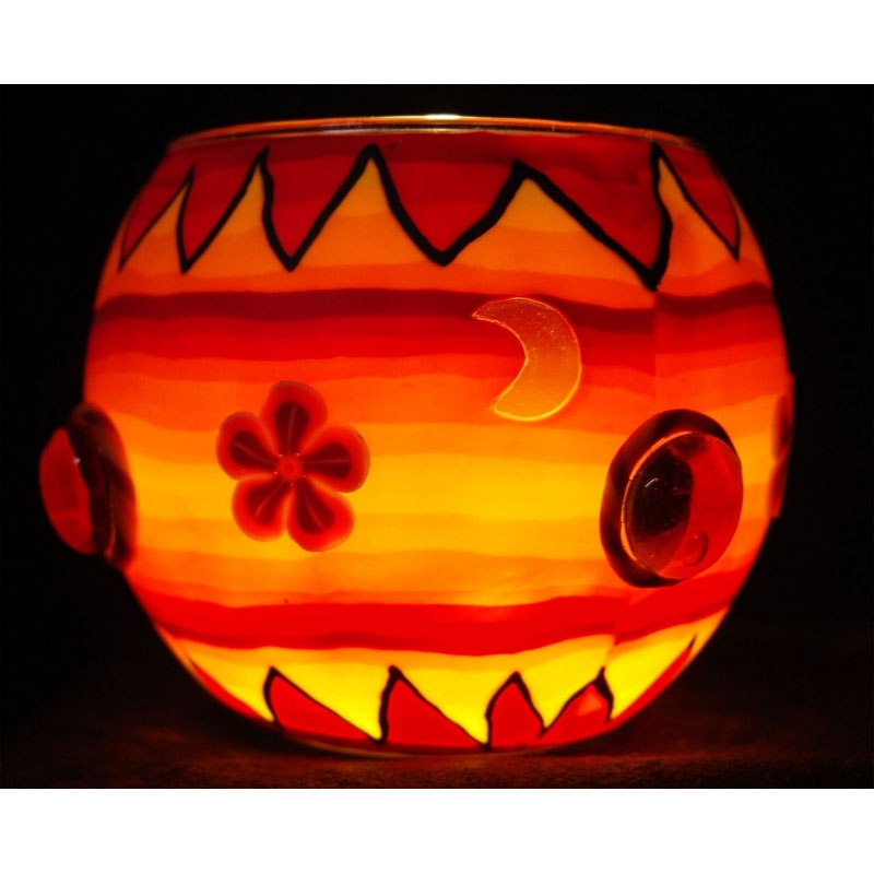 Mit einem Durchmesser von etwa 11 cm und einer Höhe von 9 cm eignet sich dieses Leuchtglas ideal als Dekoration für Wohnräume, Fensterbank oder Tisch.