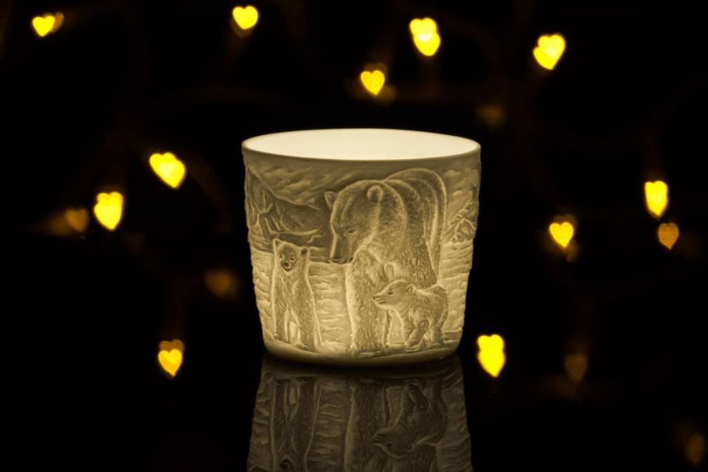 Auch die Hellmann-Versand® Starlight Votiv small Porzellan Windlichter sind als Lithophanie ausgearbeitet. Die Lithophanie ist bekanntlich eine Methode verschiedene Schichten den Porzellans übereinander zu schichten und somit Reliefbilder zu erzeugen – auch bekannt unter unter dem Namen Bisquit Porzellan. Durch die unterschiedliche Schichtdicke und somit Lichtdurchlassigkeit werden die Motive plastisch beeindruckend abgebildet.